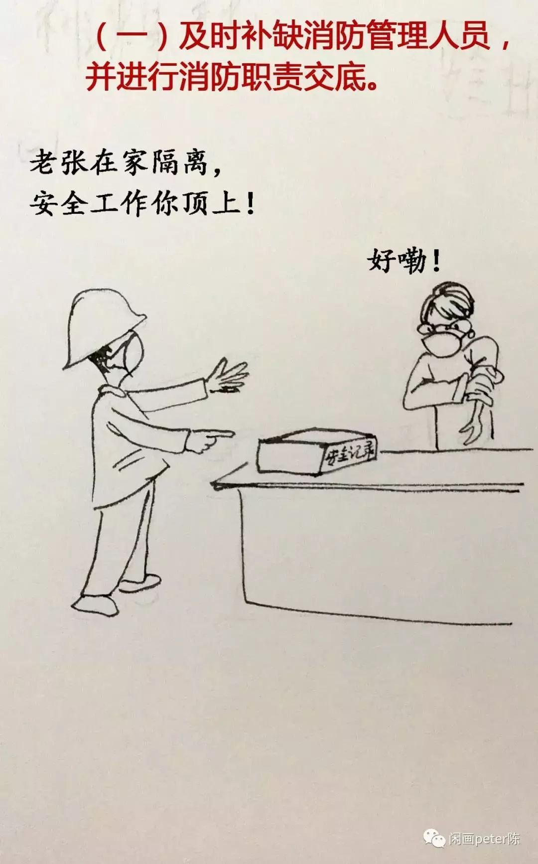 各企業、各單位要對各級消防安全組織和消防管理人員在位情況進行一次梳理,因疫情等導致人員流失、空缺的,要及時補缺。要明確各級、各崗位消防安全職責,對各級、各崗位人員消防安全職責進行一次提醒,強化其消防安全意識,確保內部消防安全管理正常運行。
