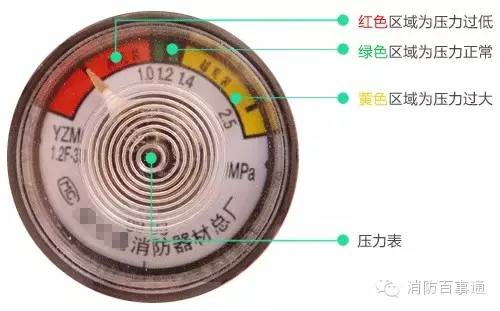 2、儲壓式滅火器壓力符合要求,壓力表指針在綠區;