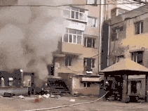 在動圖示例中,即使操控者為專業人員,同樣被水槍水帶作用力沖倒,如在室內火場出現類似情況,將非常危險。
