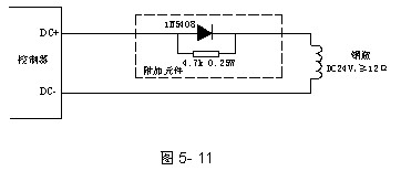 各區驅動鋼瓶電磁閥有源輸出的布線方式如圖5-11所示。附加元件應置于線路的末端、接近于鋼瓶電磁閥處。