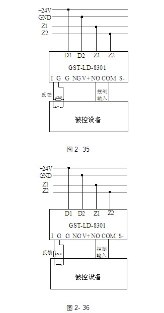 Z1、Z2:接火災(zāi)報(bào)警控制器信號(hào)二總線,無(wú)極性