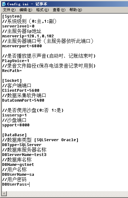 配置后臺(tái)控制軟件后打開(kāi)c:program files GSTNet_ClientMaintain目錄下的配置文件config.ini,其中的設(shè)置項(xiàng)有: