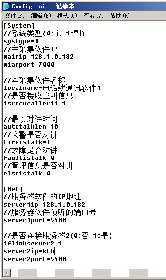 配置后臺(tái)控制軟件后打開(kāi)c:program files GSTNet_ClientFire目錄下的配置文件config.ini,其中的設(shè)置項(xiàng)有: