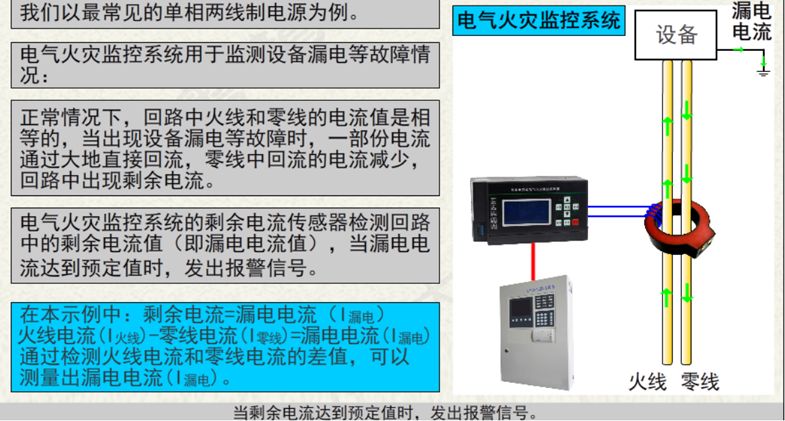 電氣火災監控系統探測被保護線路中的剩余電流、溫度、故障電弧等電氣火災危險參數變化和由于電氣故障引|起的煙霧變化及可能引起電氣火災的靜電、絕緣參數變化。當被保護電氣線路中的被探測參數超過報警設定值時,能發出報警信號、控制信號并能指示報警部位,由電氣火災監控設備和電氣火災監控探測器組成。