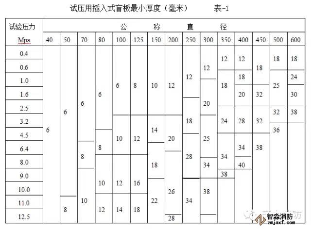 5.5 試壓盲板的選取,根據(jù)壓力及管徑按表-1選取。