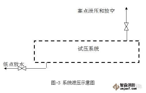 6.5.2管道系統(tǒng)試壓合格后進(jìn)行泄壓排水時(shí),必須先開啟管道系統(tǒng)高點(diǎn)的復(fù)位放空閥,在系統(tǒng)無壓力后,仍開高點(diǎn)放空閥,然后打開系統(tǒng)最低點(diǎn)的排水閥進(jìn)行系統(tǒng)排水(見圖-3),將系統(tǒng)水排到指定地點(diǎn)。