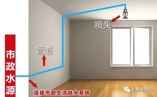 這種簡(jiǎn)易噴淋系統(tǒng)由消防水源(可直接采用市政管道供水)、噴頭、管道等組成。