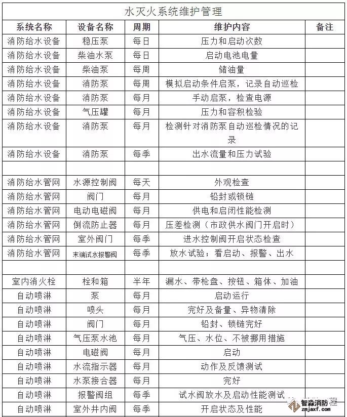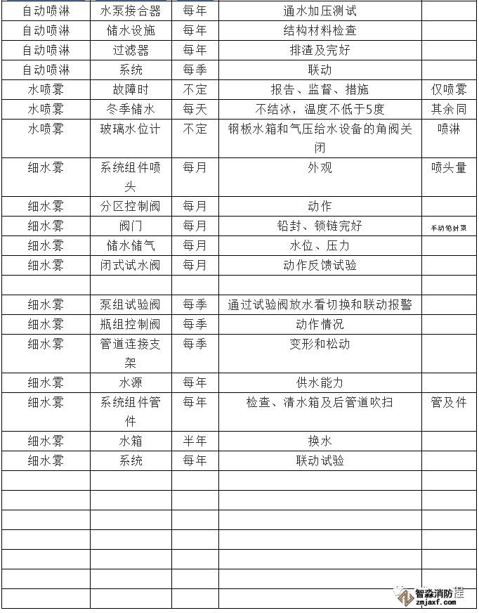 消防水滅火系統(tǒng)維護(hù)保養(yǎng)管理周期表格
