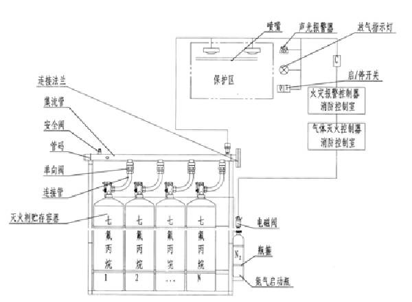 5)系統噴放氣體后,連接在管路系統上的噴氣壓力開關會給出放氣返回信號到中心控制室。