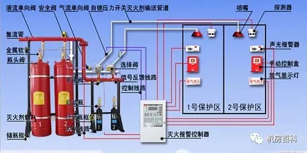 3) 有管網系統可以用同一套系統保護多個防護區。不同防護區發生火災,針對性的噴放,