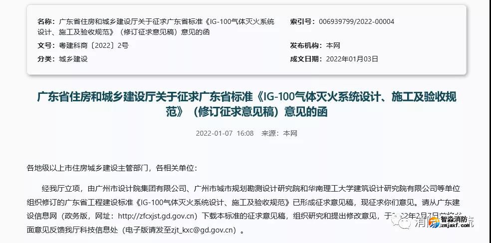 《IG100氣體滅火系統設計施工及驗收規范》征求意見