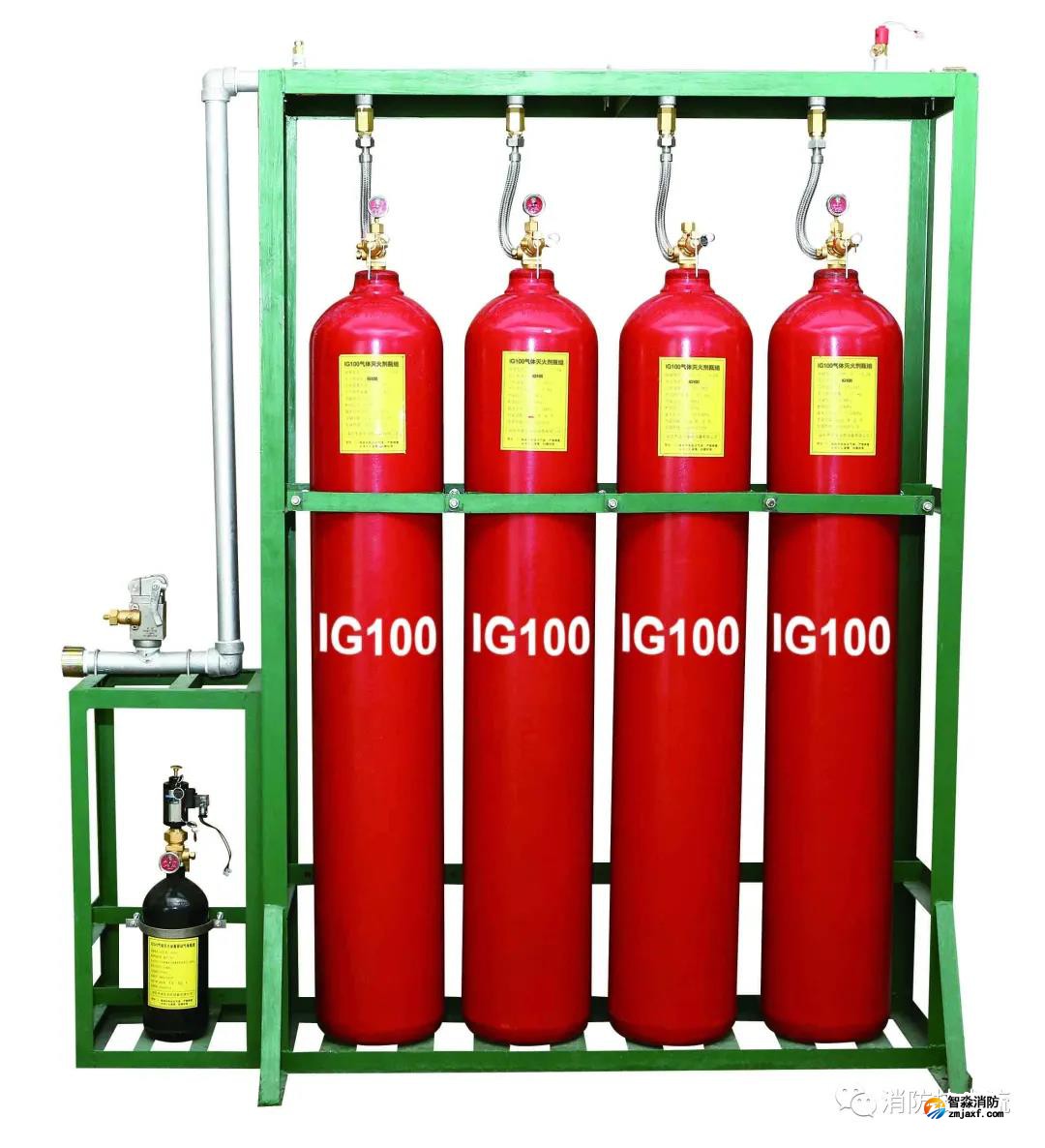 用一套滅火劑儲存裝置,保護一個防護區或一個防護對象的IG100滅火系統。